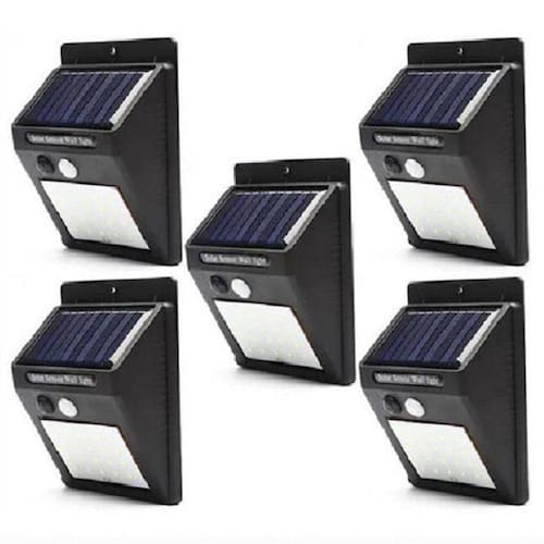 Kit 5 Luminária Solar Iluminação Jardim Exterior 30 LedsKit 5 Luminária Solar Iluminação Jardim Exterior Parede 30 LedsCom sensor Solar e ideal para áreas externas, a Luminária Luz Led Solar agrega beleza e praticidade ao exterior da Residência, Escritório e outros... Tem uma Iluminação constante amena, funcionando como luminária, e aciona uma alta luminosidade, deixando o ambiente iluminado e seguro. Movido A Energia Solar 30 LEDS Jardim Ao Ar Livre Quintal Parede Lâmpada Luz Sensor De Movimento À Prova D'águaCaracterísticas do produto.Sem fios e fácil de instalação, somente fixar na parede Solar lâmpada de parede. Diodo emissor de luz faixa de detecção do sensor com 5 metros e 120 graus de ângulo de detecção; IP65 À Prova D'água, resistente ao calor, luz solar pode se adaptar a maioria das condições meteorológicas; Fornece luz para o seu jardim, pátio, do corredor, varanda, pátio ou na calçada.Especificações:Painel Solar: 0.55 w, 17% eficiênciaBateria recarregável: 3.7 V 800 mAhQuantidade de LED: 30 LEDsPotência: 0.2 W/LEDMaterial: ABS + PCClasse da proteção: IP65Tempo de carregamento: 6 ~ 8 hTamanho da luminária: 9,5 x 12,3Itens inclusos:- 05 Luminária Solar- 05 conjunto com 02 Parafusos e buchaItens inclusos:- 05 Luminária Solar- 05 conjunto com 02 Parafusos e buchaImagens Ilustrativas