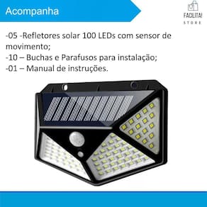 KIT 5 Luminárias Solar 100 Leds Prova Dágua Sensor Presença - Cor Branco DESCRIÇÃO DO ANÚNCIO: