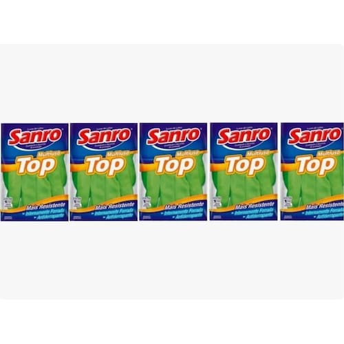Características do produto: Material: látex natural com acabamento antiderrapante na palma Forro interno: flocado com flocos de algodão para maior conforto Comprimento: 31 cm Espessura: 0,60 mm Formato: anatômico para um ajuste confortável Ca: 40.045 Cor: verde Tamanhos disponíveis: p, m, g Uso: único descartável Marca: sanro top