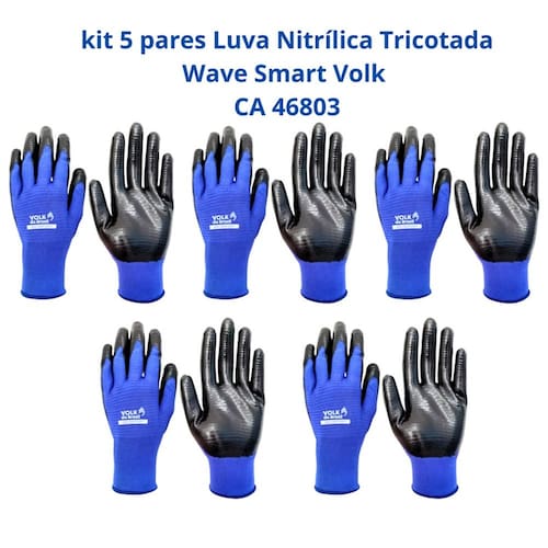 Kit 5 pares Luva Nitrílica Tricotada Wave Smart CA 46803 Proteção e Conforto em Diversas Atividades A Luva Nitrílica Tricotada Wave Smart é um Equipamento de Proteção Individual (EPI) desenvolvido para proporcionar segurança, resistência mecânica e química, além de destreza e conforto. Com sua fibra sintética tricotada e revestimento em nitrilo, é ideal para quem busca alto desempenho e proteção durante o trabalho.