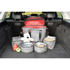 Capacidade para: 2 x sacos de armazenamento de 15 litros cada 2 x comedouros dobráveis de 2 litros cada Dimensões da mala de viagem: 38cm de comprimento x 34 de altura x 20cm de largura Marca: Não Informado Ean: 5060519568267