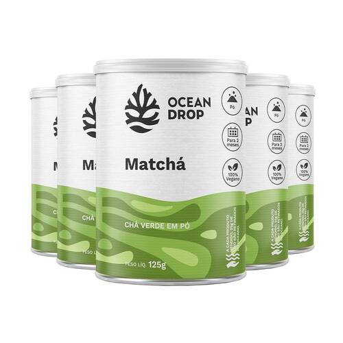 Kit 5 Matchá Ocean Drop - 125g em Pó Composição: - Matchá Camellia sinensis em pó. - Não contém glúten. Informações: - Produto autorizado para comercialização em todo o território nacional através do anexo I da RDC 240/2018 da ANVISA. - AFE do MS 6.02234-1. Posologia: - Diluir 1 colher de chá aproximadamente 2g em 300ml de água ou bebida de sua preferência, ou conforme recomendação . - Produto com duração de 2 meses. Contraindicações: - Indicado para pessoas acima de 19 anos. - Este produto não é um . Características: - Sabor natural. - Menos amargo que o chá-verde, podendo ser em receitas ou misturado a bebidas quentes ou frias. Marca: Não Informado