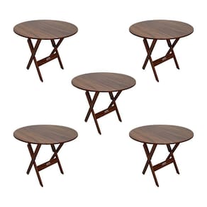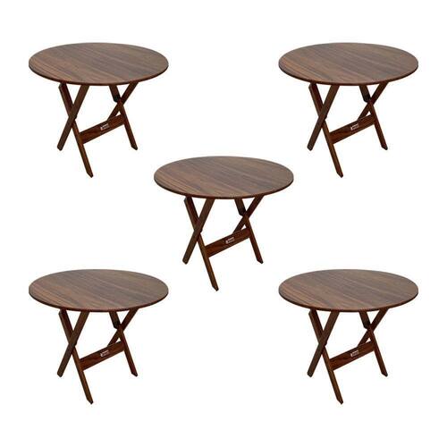Kit 5 Mesas Dobráveis De Madeira Redonda 90cm Imbuia - TarimatãA Mesa redonda dobrável é ideal para bares, restaurantes, estabelecimentos, áreas de lazer e também para sua casa. Em madeira maciça tornando resistente e durável. Seu design permite ser encaixado em qualquer ambiente, trazendo um toque a mais para seu estabelecimento. Além de sua durabilidade, o que lhe trará conforto para servir seus clientes. Por ser dobrável torna-se mais fácil guardar, manusear e limpar o produto.CARACTERÍSTICASTipo: Mesa DobrávelModelo: RedondoCor: ImbuiaDIMENSÕES DA MESAAltura: 77cmAltura fechado: 98cmDiâmetro: 90cmAtenção: EVITE USAR PRODUTOS ABRASIVOS E QUÍMICOS PARA LIMPEZA DO PRODUTO, aconselha-se o uso de pano umedecido para melhor conservação; mantenha o produto fora de chuva e sol constantes.ATENÇÃOIMAGENS MERAMENTE ILUSTRATIVAS REALIZADO EDIÇÃO, PODENDO HAVER UMA PEQUENA VARIAÇÃO DE COR DEPENDENDO DE CADA TELA OU MONITOR.Kit 5 Mesas DobrÃveis de Madeira Redonda 90cm Imbuia - TarimatÃ