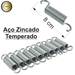 especificações das Molas: - Espessura do fio: 0,3 cm - Comprimento total da mola: 8 cm aproximadamente - Peso do produto unidade : 52 gramas - Elasticidade / Tensão da mola: 50% da medida