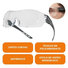 Proteção ocular com conforto e desempenho excepcionais para ambientes internos. Este modelo de óculos de segurança combina design moderno, leveza e alta resistência, sendo ideal para profissionais de acabamento, produção, limpeza e setores como hotelaria e restaurantes.