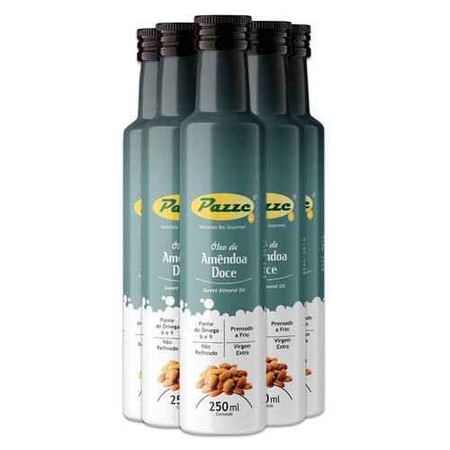 Kit 5 Óleo de Amêndoa Doce Extra Virgem Pazze 250ml O Óleo de Amêndoa Doce é fonte de ômegas 6 e 9 e gordura monoinsaturada. Óleo Vegetal prensado à frio, engarrafado e lacrado. Pode ser utilizado nos mais variados pratos dando um toque muito especial e saboroso.