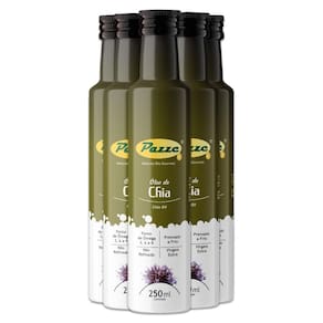 Kit 5 Óleo de Chia Extra Virgem Pazze 250ml Óleo vegetal extraído por prensagem a frio das sementes de chia Salvia hispanica L. , preservando suas propriedades nutricionais. Possui sabor suave e textura leve, sendo indicado para uso culinário.