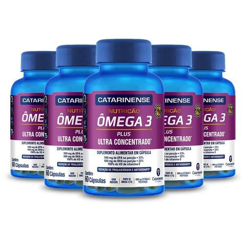 Kit 5 Ômega 3 Concentrado Catarinense 60 capsulas O produto Ômega 3 Concentrado Catarinense em cápsulas é um suplemento alimentar que contém ácidos graxos essenciais, como EPA e DHA, e vitamina E. Aqui está uma descrição detalhada das suas principais características: Finalidade de Uso: EPA 990 mg por porção : Auxilia na redução dos níveis de triglicérides no sangue, contribuindo para a saúde cardiovascular. DHA 660 mg por porção : Importante para a saúde cerebral e ocular. Vitamina E 150% do Valor Diário recomendado : Atua como um antioxidante, protegendo as células contra os danos causados pelos radicais livres. Consumo Recomendado: Dose diária: 3 cápsulas ao dia. Ingredientes: Óleo de Peixe: Fonte de EPA e DHA. Vitamina E Acetato de DL Alfa Tocoferol . Cápsula: Composta por água purificada, gelificante gelatina bovina INS 428 e umectante glicerina INS 422 . Informações Adicionais: Alergênicos: Contém derivados de peixe e pode conter soja. Não contém glúten. Este suplemento é indicado para quem deseja complementar a dieta com ômega 3 e vitamina E, visando benefícios cardiovasculares e antioxidantes. Produto dispensado de registro de acordo com a RDC 27/2010. Marca: Não Informado Ean: 7908609539088