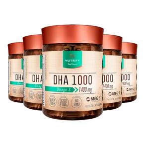 Kit 5 ômega 3 dha 1000 nutrify 60 cápsulas Benefícios: ácido graxo essencial muito presente no cérebro e na retina humana, evidenciando assim a sua importância para cognição e saúde da visão, além de ser fundamental para a formação e maturação normal do cérebro desde a gestação até infância e adolescência. Os benefícios da suplementação de ômega 3 são amplamente respaldados pela ciência. Dha 1000 nutrify é ultraconcentrado em dha, o ácido graxo predominante no cérebro. O óleo de peixe utilizado em sua produção é o meg-3, originado de pescas regulamentadas que protegem as reservas naturais, garantindo alta qualidade, concentração, pureza e sustentabilidade. nutrify valoriza a origem de cada ingrediente, respeita a integridade de suas fontes naturais e dos envolvidos em sua produção. É assim que criamos produtos saudáveis e saborosos, que fazem bem para as pessoas e para o planeta. Acreditamos que nutrir corpo e mente de modo saudável nos torna capazes de alimentar o mundo com atitudes positivas. Ingredientes:óleo de peixe, água purificada, geleificante gelatina e umectante glicerina. Alérgicos: contém derivados de peixe e soja. Não contém glúten. Pessoas alérgicas a peixes e crustáceos devem evitar o consumo deste produto. Este produto não é um . Não exceder a recomendação diária de consumo indicada na embalagem. Mantenha fora do alcance de crianças. Este produto é recomendado para adultos a partir de 19 anos. Apresentação: embalagem disponível: pote contendo suplemento em cápsulas. Contém 60 cápsulas. Peso lí. 78 g produto classificado como: suplemento alimentar em cápsula. Marca: Não Informado