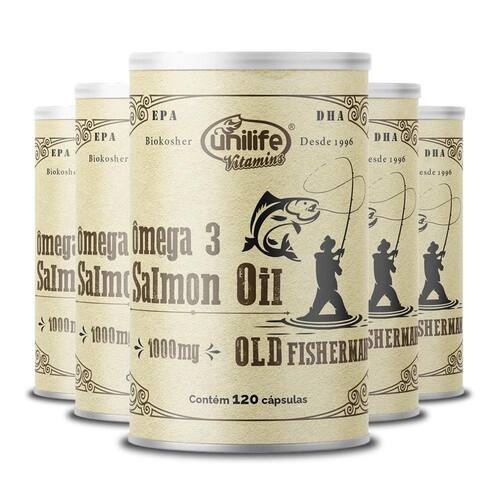Kit 5 ômega 3 óleo de salmão old fisherman da unilife Ômega 3 óleo de salmão old fisherman da unilife é um suplemento a base de óleo de salmão, rico em ômega 3, é um produto totalmente natural capaz de proporcionar incríveis benefícios a sua dieta, já iremos falar diretamente aos atletas que buscam ou definição muscular é necessario suplementar ômega 3 mas por que Ômega 3 é encontrado em abundancia em peixes frios, no brasil os únicos que encontramos é o salmão em cativeiros, ou seja não é a mesma quantidade que encontramos em aguas geladas, a unilife utiliza o óleo de salmão em sua composição, nos trazendo a quantidade encontrada em peixe de aguas frias, o que é a ideal para a nossa melhor qualidade de vida. Quais são os benefícios do ômega 3 óleo de salmão old fisherman da unilife São diversos as qualidades deste incrível produto, além do ômega 3 óleo de salmão old fisherman da unilife ser muito atrativo para a qualidade de vida, pode ser muito atrativo a sua dieta e perca de peso. Como utilizar o ômega 3 óleo de salmão old fisherman da unilife A fabricante unilife recomenda o consumo de 2 a 4 cápsulas diárias, após as principais refeições do dia, o produto deve ser consumido juntamente com líquidos. A equipe da edin adverte, o consumo desse produto deve ser feito com um acompanhamento nutricional adequado, ultrapassar a dose diária recomendada pelo fabricante deve ser somente feito por um . Ingredientes: Óleo de salmão, gelatina bovina, umectante glicerina e água Alergenicos: Contém oleo de salmão, e óleo de peixe Marca: Não Informado