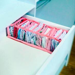 Colméia Organizadora de Gavetas Transparente com Viés Rosa 11 Nichos - 604 Ideal para meias, calcinhas, cuecas, luvas, lenços, sapatinhos de bebe, chaves, 11 nichos em cada organizador 10x12x33cm Características Material: pvc transparente com Viés em TNT rosa Características Gerais Cor: transparente Marca: Não Informado