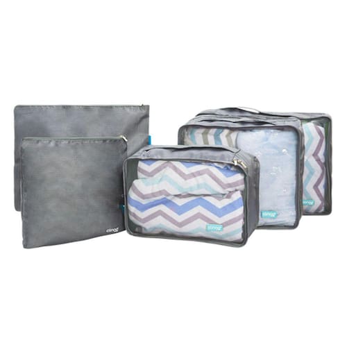 O Conjunto de Organizadores de Mala de Viagem da Clingo é ideal para organizar todos os pertences do bebê ou dos papais de forma segura e eficaz. Conta com 5 organizadores, sendo 3 necessaires com alças e 2 sacos organizadores. A qualidade do produto é garantida pelo seu tecido durável e resistente.