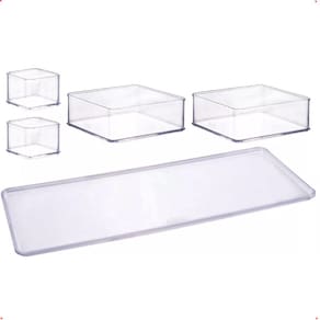 Mais que uma caixa é um sistema de organização. O kit contém 4 organizadores e 1 bandeja.