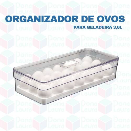 ORGANIZADOR DE OVOS - 21 UNIDADES - 3,6L O organizador de ovos com tampa clear fresh é o novo padrão de transparência na organização da sua geladeira. Empilhe, encaixe e enxergue facilmente os ovos armazenados na geladeira, mantendo tudo em ordem. Seu design foi pensado para permitir armazenagem no interior da geladeira ao invés da porta, evitando troca de temperaturas constantes que podem deteriorar os ovos, mantendo uma rotina sem desperdícios. Produzido em material resistente, super transparência, beleza e cuidado com o alimento são características da linha, perfeitas para auxiliar na organização da sua geladeira e facilitar o seu dia a dia.