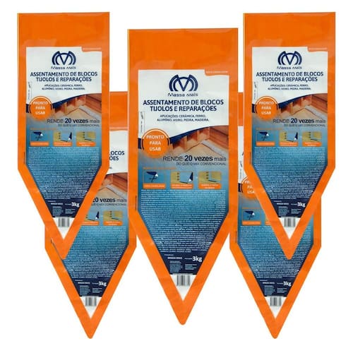 Eficiência Superior: Uma bisnaga de 3kg de Massa Mais equivale a 60kg de cimento tradicional, proporcionando uma economia significativa de material e espaço. Versatilidade: Ideal para assentamento, reboco e reparos, aplicando-se eficientemente em superfícies de concreto, cerâmica, ferro, alumínio, vidro, pedra e madeira. Desempenho Superior: A composição da Massa Mais proporciona uma aderência e durabilidade excepcionais, garantindo resultados de alta qualidade em suas obras.