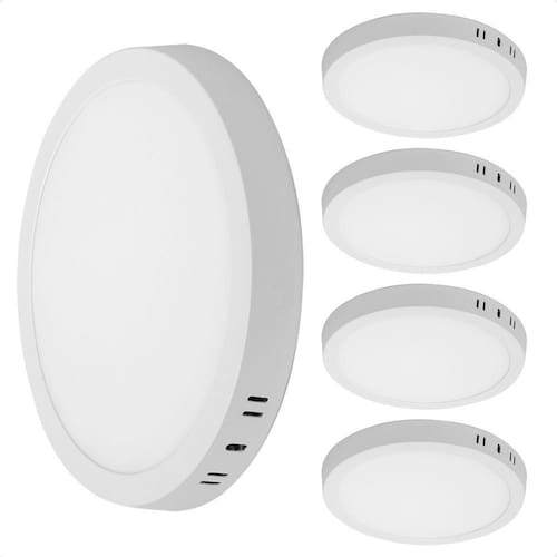 Kit 5 Painel de Led Redondo Sobrepor 12W Bivolt Taschibra 3000K Quente