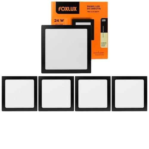 Ilumine seu ambiente com elegância e eficiência usando o Painel de LED 24W 4000K Quadrado Embutir Preto Foxlux. Com um design moderno e discreto, este painel oferece uma iluminação suave e agradável, perfeita para qualquer espaço, seja residencial ou comercial.