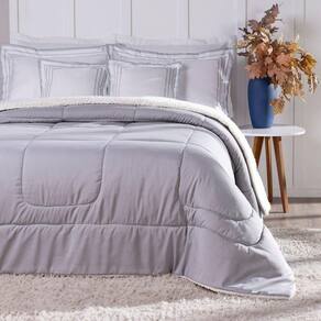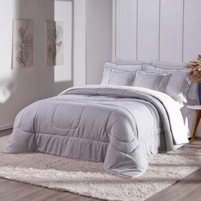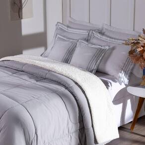 Kit 5 Pçs Coberdrom Casal Queen Soft Hipercal 400 Fios Dupla Face Cinza