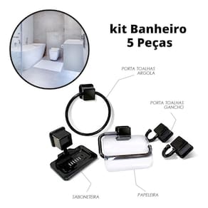 Kit 5 peças Acessórios para Banheiro Completo Kit Banheiro com 5 Peças - Organização e Elegância para Seu Banheiro Transforme seu banheiro em um espaço organizado e elegante com o nosso Kit Banheiro com 5 Peças. Fabricado em polipropileno na cor preta, este kit combina excelente resistência com durabilidade, garantindo funcionalidade e beleza para o ambiente. O kit é composto por 1 saboneteira, 1 porta toalhas argola, 2 porta toalhas gancho simples e 1 papeleira. Características: -kit com 5 peças para banheiro organizado.-feito em polipropileno resistente na cor preta.-componentes: 1 saboneteira, 1 porta toalhas argola, 2 porta toalhas gancho simples, 1 papeleira. Especificações: -material: Plástico resistente polipropileno -fácil instalação.-inclui 5 parafusos e 5 buchas para fixação. Conteúdo da Embalagem: -01 Kit para Banheiro com 5 Peças na cor Preta Obtenha organização e sofisticação no seu banheiro com o Kit Banheiro com 5 Peças. Feito de plástico resistente, esse conjunto preto adiciona funcionalidade e estilo ao ambiente. Com saboneteira, porta toalhas argola, porta toalhas gancho simples e papeleira, esse kit oferece todas as peças necessárias para manter seu banheiro arrumado. A instalação é simples, com 5 parafusos e buchas incluídos. Mantenha a elegância do seu banheiro com praticidade e qualidade.