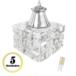 Kit 5 Pendente Cristal Detalhe Metal Polido Lavabo Bet43 + Led Uma bela peça e delicada é o pendente de cristal. O pingente cristal k9 torna o espaço mais elegante independente do ambiente que for inserido. O detalhe em prata combina com vários tipos de ambientes, complementando e realçando a beleza da sua casa.