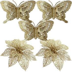 1 Conjunto Com 5 Pendentes Natalino Borboletas e Flores decorativo para árvore de Natal;