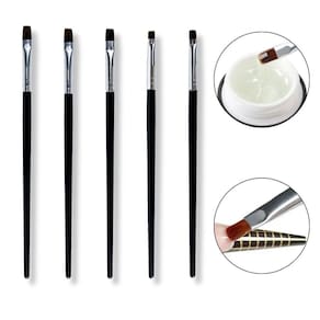 Características Principais: - Cabo longo; - Ergonômico; - Não se desgasta facilmente; - 5 Tamanhos de cerdas; - Pontas retas; - Para todas as etapas da construção de unhas; - Fácil de higienizar; - Utilizado com materiais como: gel, acrygel.