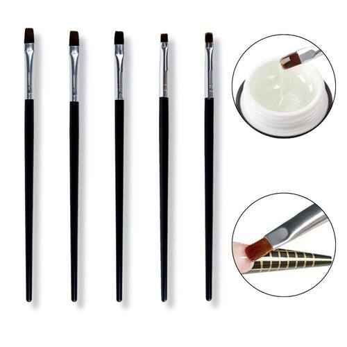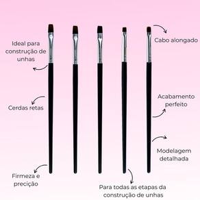 Características Principais: - Cabo longo; - Ergonômico; - Não se desgasta facilmente; - 5 Tamanhos de cerdas; - Pontas retas; - Para todas as etapas da construção de unhas; - Fácil de higienizar; - Utilizado com materiais como: gel, acrygel.