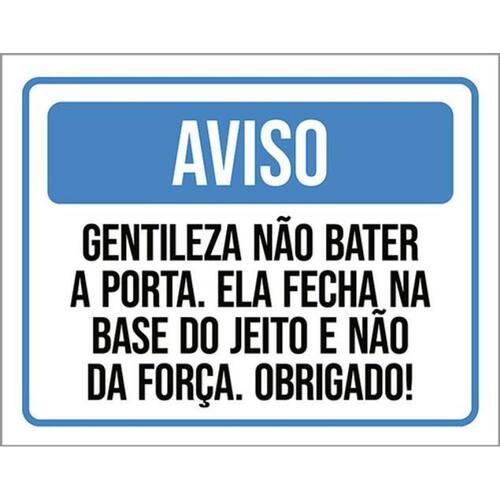 Kit 5 Placa Gentileza Bater Porta Jeito Força36x46 Placas de sinalizaço fabricadas com poliestireno de alto impacto PSAI de 2mm e impressão ultravioleta.