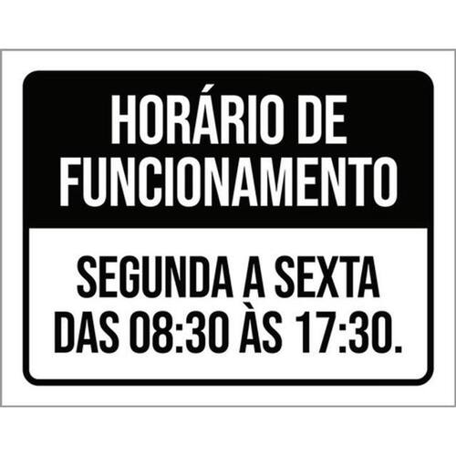 Kit 5 Placa Preta Horário Funcionamento Segunda Sexta 836x46 - Informações do Produto: Placas decorativas fabricadas com poliestireno de alto impacto PSAI de 2mm e impressão ultravioleta. - Medidas: 36cm x 46cm - Fixação: Todas as placas possuem adesivo dupla face para aplicação em qualquer tipo de superfície lisa. de 12 meses e disponibilidade imediata. Marca: Não Informado