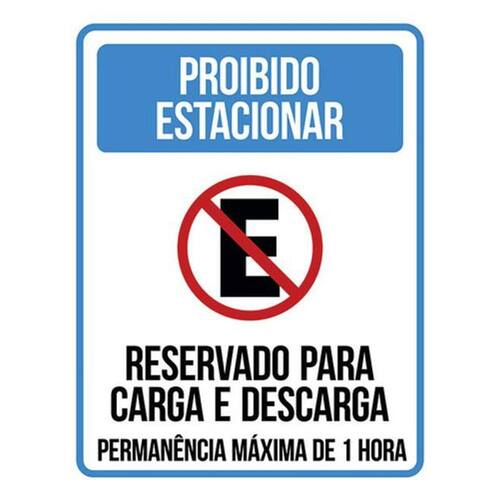 Kit 5 Placa Proibido Estaciona Reservado Carga Descarga36x46 Placas de sinalizaço fabricadas com poliestireno de alto impacto PSAI de 2mm e impressão ultravioleta.