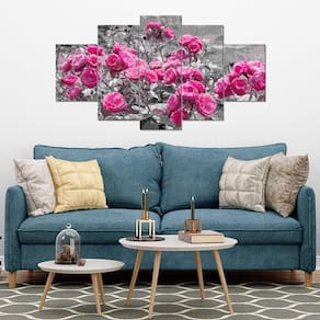 Kit 5 Placa Quadro Decorativo Quarto Sala Flores Vermelha