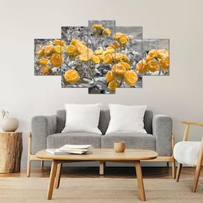 Kit 5 Placa Quadro Decorativo Quarto Sala Flores Vermelha
