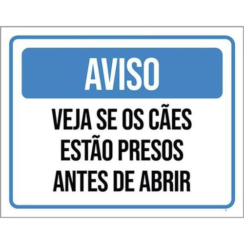 Kit 5 Placa Veja Se Cães Estão Presos Antes Abrir36x46 Placas de sinalizaço fabricadas com poliestireno de alto impacto PSAI de 2mm e impressão ultravioleta.