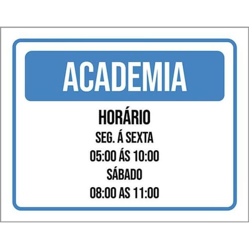 Kit 5 Placas Academia Horário Segunda Sexta Sábado 36x46 Placas de sinalizaço fabricadas com poliestireno de alto impacto PSAI de 2mm e impressão ultravioleta.