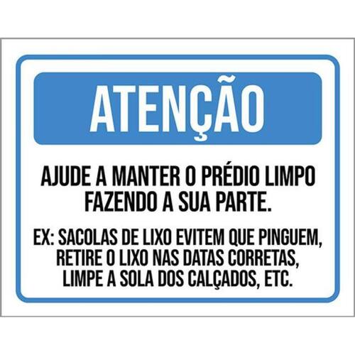 Kit 5 Placas Ajude Manter Prédio Limpo 36x46 Placas de sinalizaço fabricadas com poliestireno de alto impacto PSAI de 2mm e impressão ultravioleta.