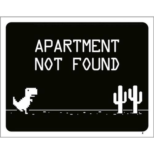 Kit 5 Placas Apartament Not Found Dinossauro 36x46 Placas de sinalizaço fabricadas com poliestireno de alto impacto PSAI de 2mm e impressão ultravioleta.