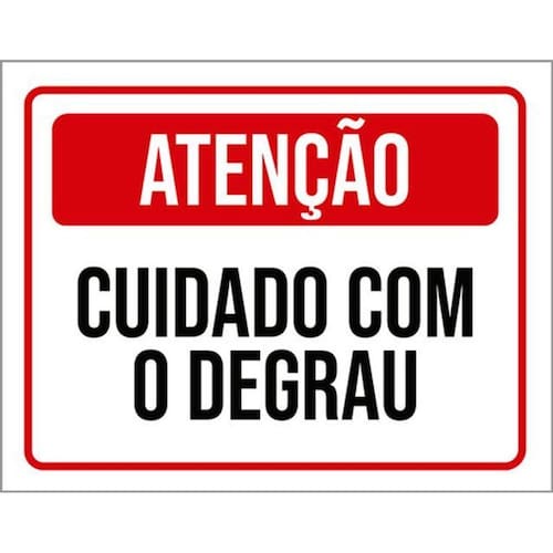Kit 5 Placas Atenção Cuidado Com Degrau Vermelha