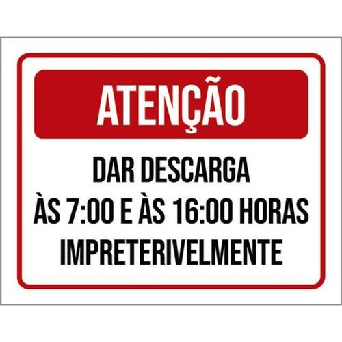 Kit 5 Placas Atenção Dar Descarga Entre 7 E 16h 36x46 Placas de sinalizaço fabricadas com poliestireno de alto impacto PSAI de 2mm e impressão ultravioleta.