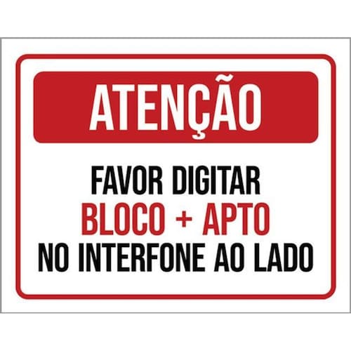 Kit 5 Placas Atenção Digitar Bloco Apto Interfone Ao Lado