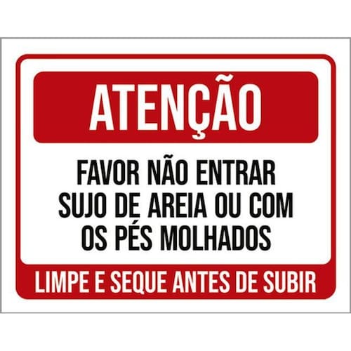 Kit 5 Placas Atenção Favor Não Entrar Sujo Areia Molhados Placas de sinalizaço fabricadas com poliestireno de alto impacto PSAI de 2mm e impressão ultravioleta.