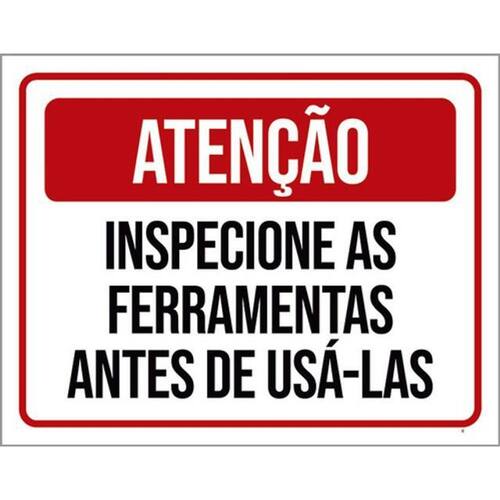 Kit 5 Placas Atenção Inspecione Ferramentas 36x46 Placas de sinalizaço fabricadas com poliestireno de alto impacto PSAI de 2mm e impressão ultravioleta.