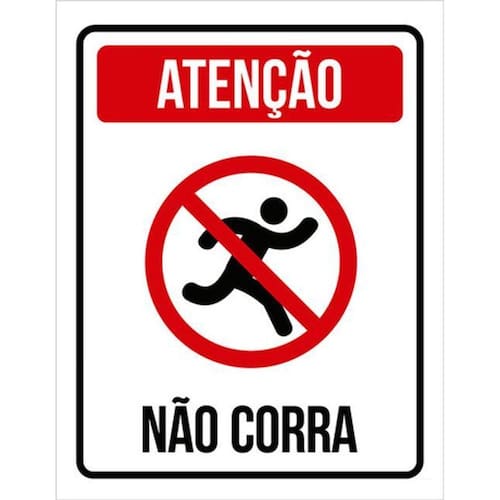 Kit 5 Placas Atenção Não Corra Desenho 36x46 Placas de sinalizaço fabricadas com poliestireno de alto impacto PSAI de 2mm e impressão ultravioleta.