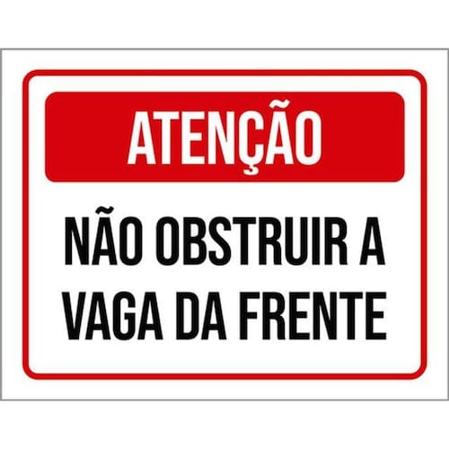 Kit 5 Placas Atenção Não Obstruir Vaga Da Frente Placas de sinalizaço fabricadas com poliestireno de alto impacto PSAI de 2mm e impressão ultravioleta.