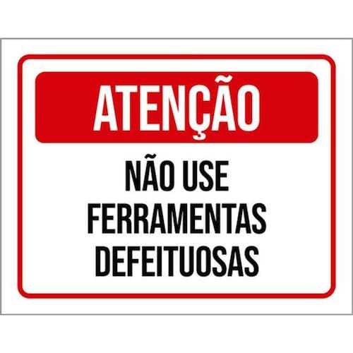 Kit 5 Placas Atenção Não Use Ferramentas Defeituosas 36x46 Placas de sinalizaço fabricadas com poliestireno de alto impacto PSAI de 2mm e impressão ultravioleta.
