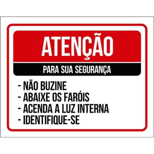 Kit 5 Placas Atenção Para Segurança Não Buzine Abaixe Faróis