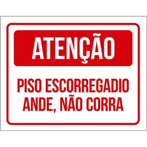 Kit 5 Placas Atenção Piso Escorregadio Ande Não Corra 36x46 Placas de sinalizaço fabricadas com poliestireno de alto impacto PSAI de 2mm e impressão ultravioleta.
