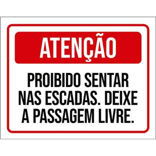 Kit 5 Placas Atenção Proibido Sentar Escadas Passagem Livre