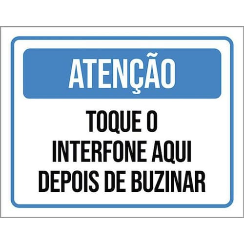 Kit 5 Placas Atenção Toque Interfone Depois Buzinar Placas de sinalizaço fabricadas com poliestireno de alto impacto PSAI de 2mm e impressão ultravioleta.