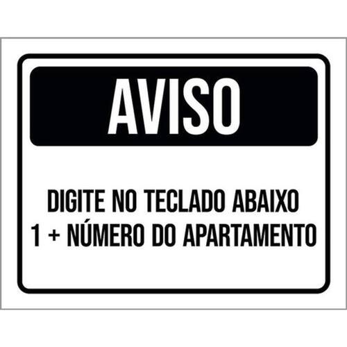 Kit 5 Placas Aviso Digita Teclado Abaixo Número Apto 36x46 Placas de sinalizaço fabricadas com poliestireno de alto impacto PSAI de 2mm e impressão ultravioleta.
