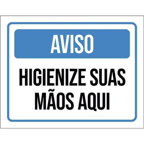 Kit 5 Placas Aviso Higienize Suas Mãos Aqui Azul 36x46 Placas de sinalizaço fabricadas com poliestireno de alto impacto PSAI de 2mm e impressão ultravioleta.
